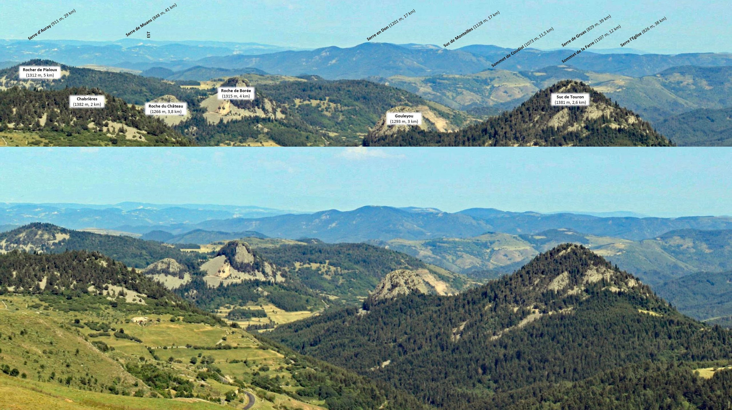 Panorama depuis la table d’orientation du Mézenc (1/2).